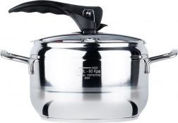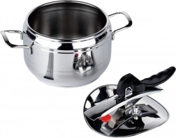 Kompaktan nerđajući lonac pod tlakom zapremine 3,5 l za brzo, štedljivo i zdravo kuhanje pod pritiskom. Zahvaljujući troslojnom dnu, regulaciji tlaka i dvama sigurnosnim ventilima skraćuje vrijeme pripreme i štedi energiju. Pogodan za plin, struju, keramiku, halogen i indukciju te se može prati u perilici posuđa (bez poklopca).