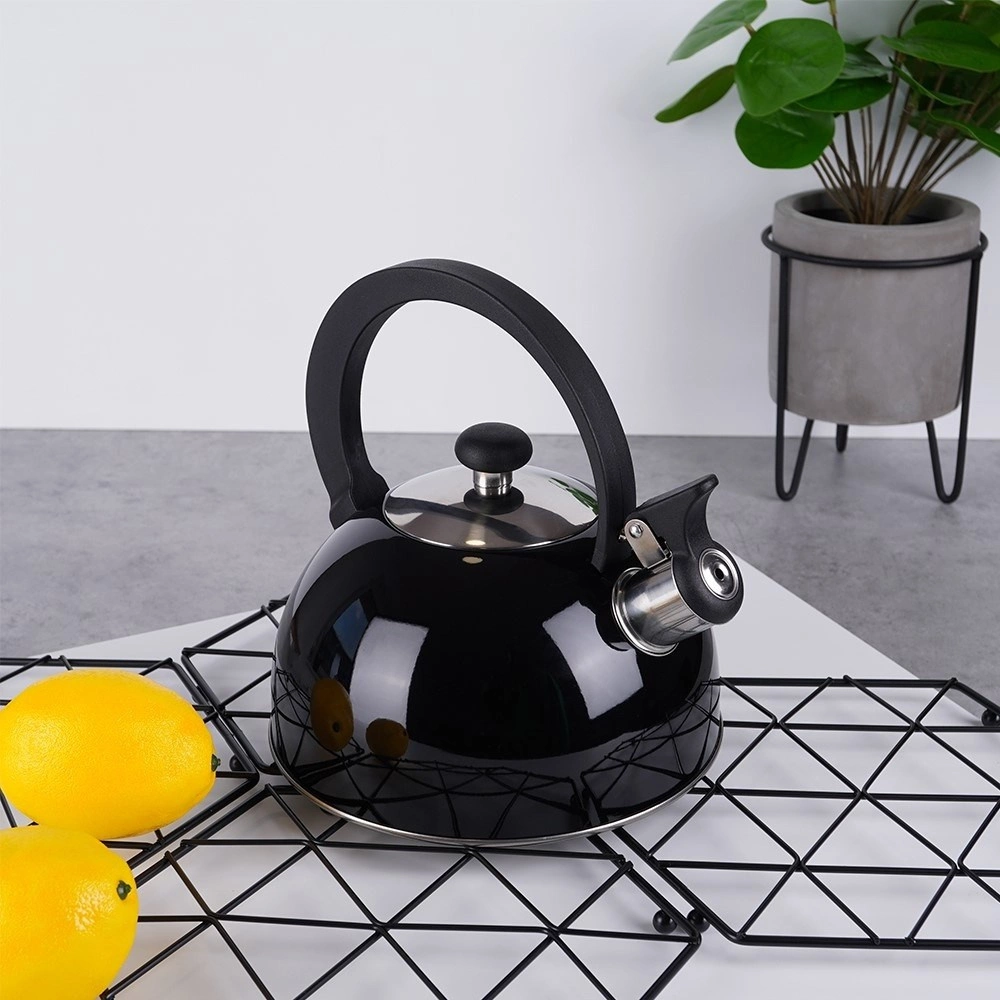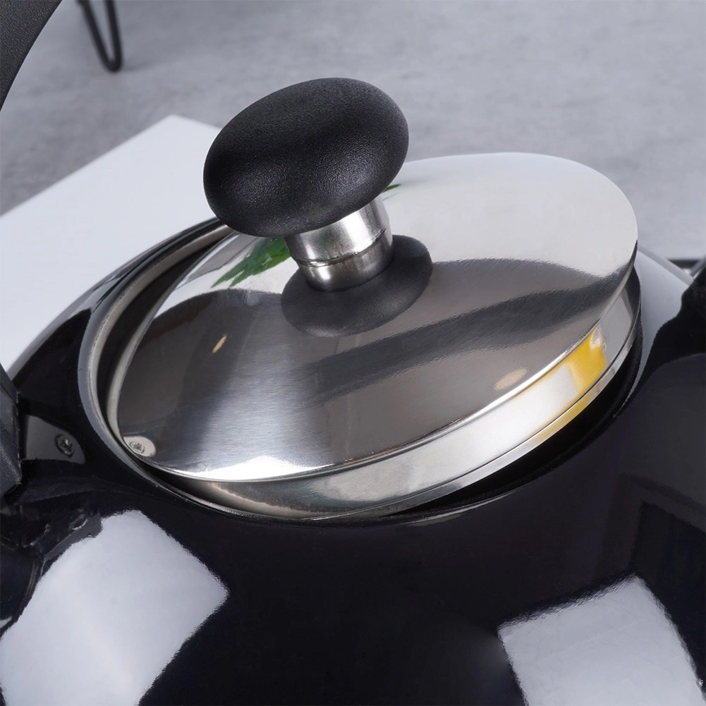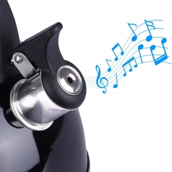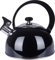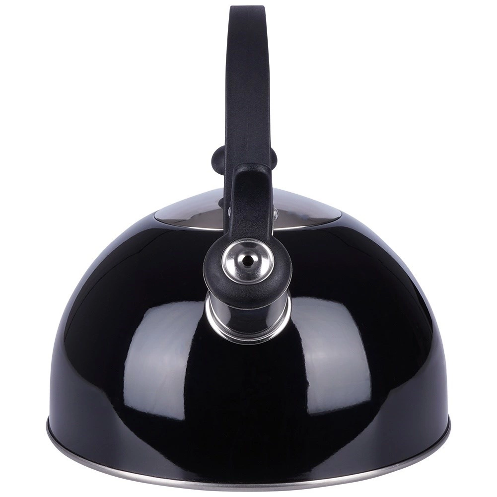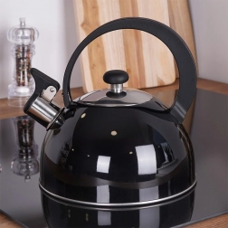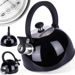 Stilizan čajnik sa zviždaljkom u sjajno crnoj izvedbi spaja izdržljiv nehrđajući čelik i praktičnost za svakodnevnu upotrebu. Široko dno osigurava učinkovit grijani učinak, a zviždaljka vas pouzdano upozorava na točku vrenja.