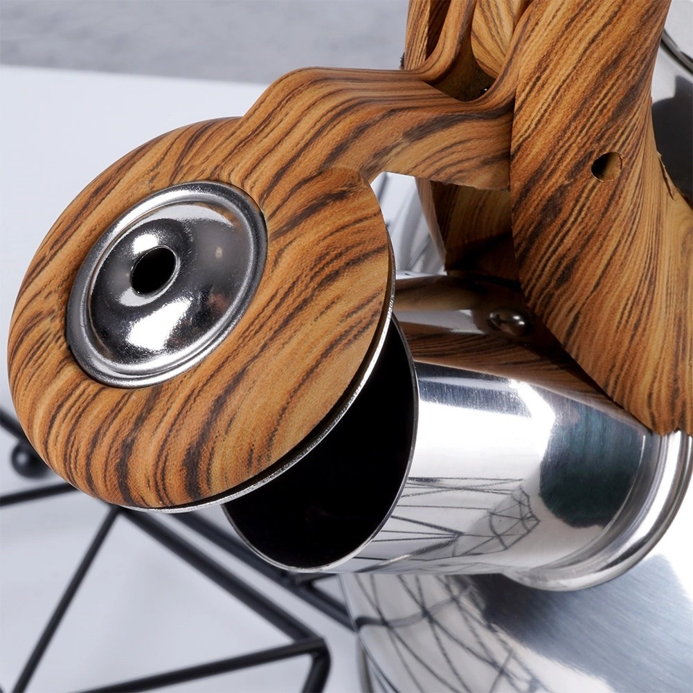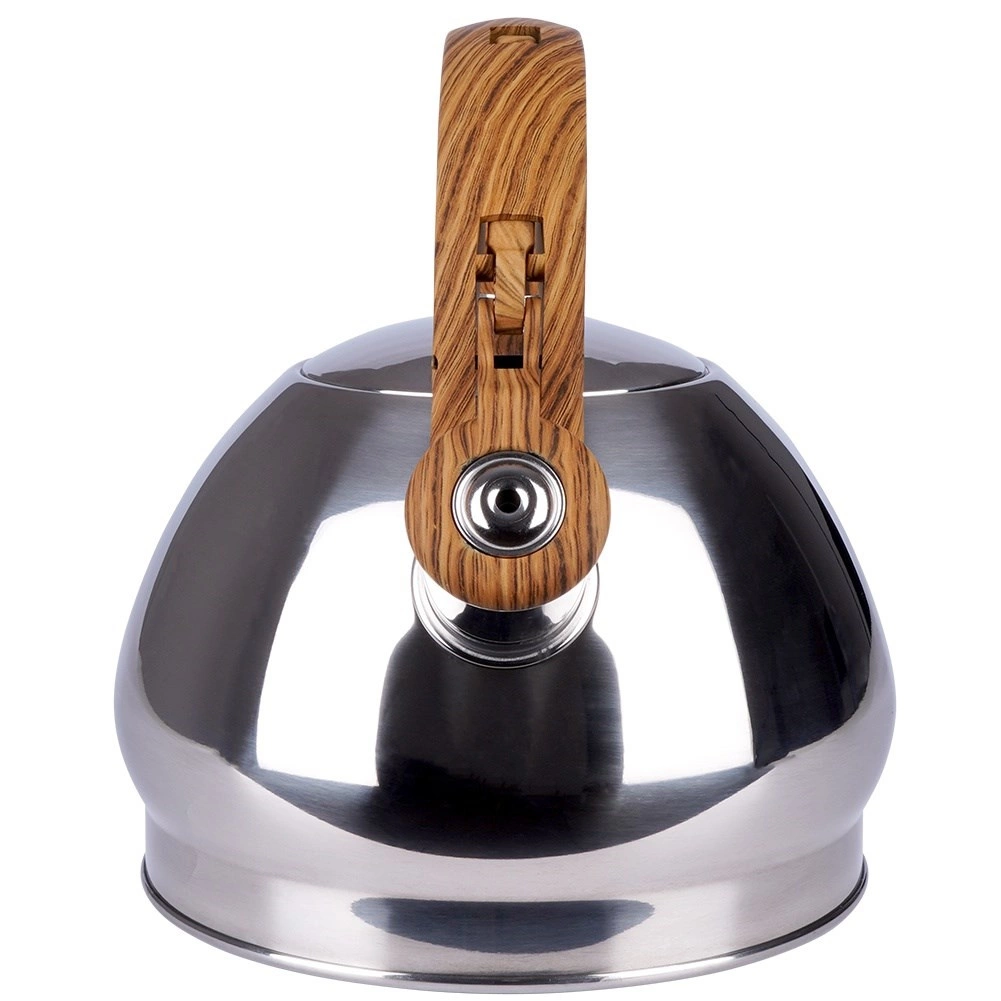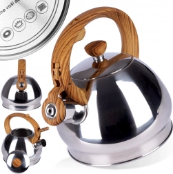 Elegantni čajnik od nehrđajućeg čelika spaja klasičan izgled s modernom funkcionalnošću. Zahvaljujući tijelu od nehrđajućeg čelika izdržljiv je, higijenski i ne mijenja okus vode. Automatska zviždaljka pouzdano vas upozori na točku vrenja, dok ergonomska ručka od otpornog materijala ostaje hladna tijekom upotrebe.