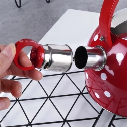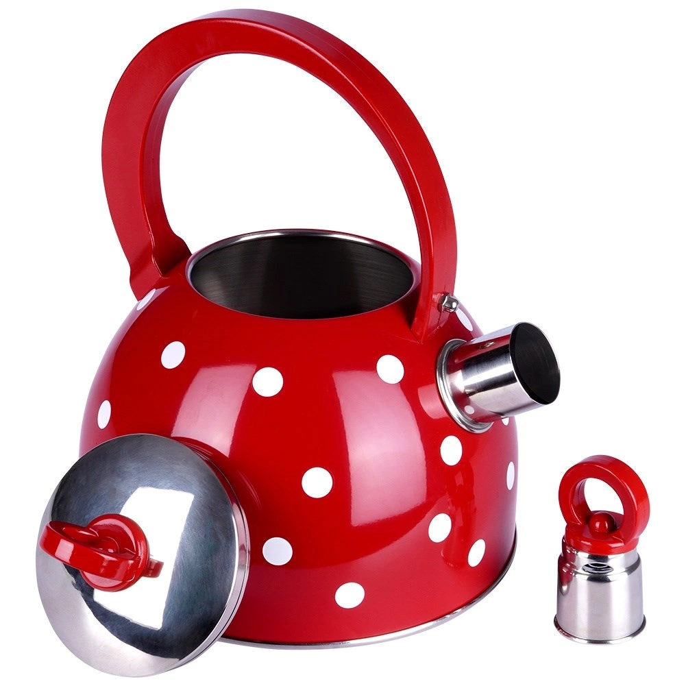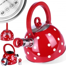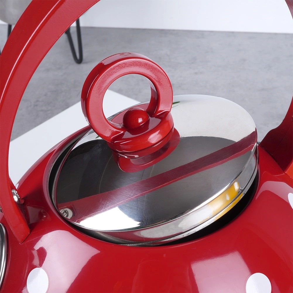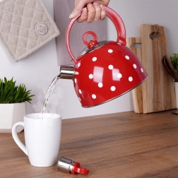Crveno izvedenje s bijelim točkicama pretvara svakodnevno grijanje vode u radost i daje kuhinji originalan šarm.