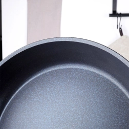 Robusna tava od lijevanog aluminija s dijamantnim keramičkim slojem donosi vrhunsku neljepljivost i izvrsno provođenje topline. Zahvaljujući česticama dijamanta površina se zagrijava brže i ravnomjernije, što štedi energiju i vrijeme pri kuhanju. Prikladna za svakodnevno prženje mesa, povrća i pripremu palačinki.