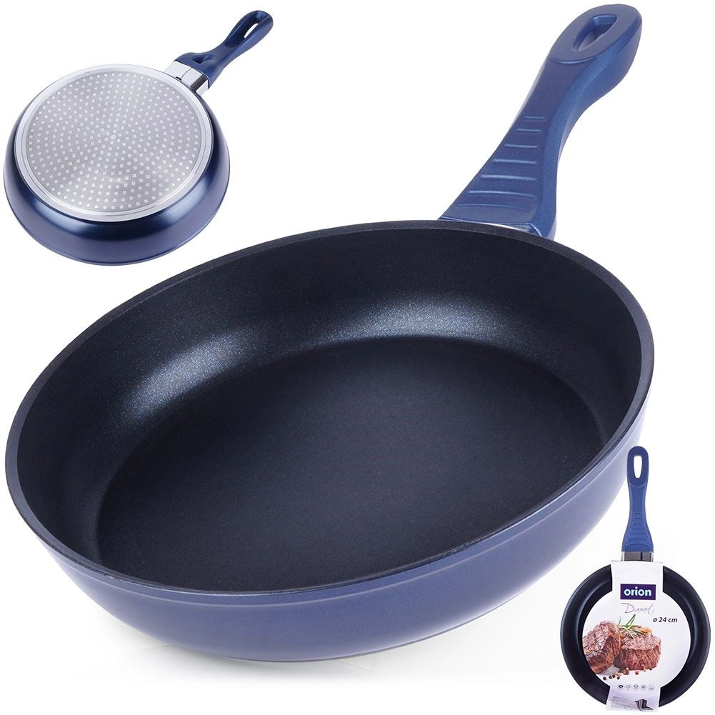 Univerzalna tava promjera 24 cm s izdržljivom dijamantnom neljepljivom površinom za svakodnevno kuhanje. Nudi brzo i ravnomjerno zagrijavanje, prženje s malo masnoće i jednostavno čišćenje. Bez PFOA i PTFE, kompatibilna sa svim vrstama štednjaka uključujući indukciju, te ima ergonomsku ručku s neklizajućom silikonskom oblogom.