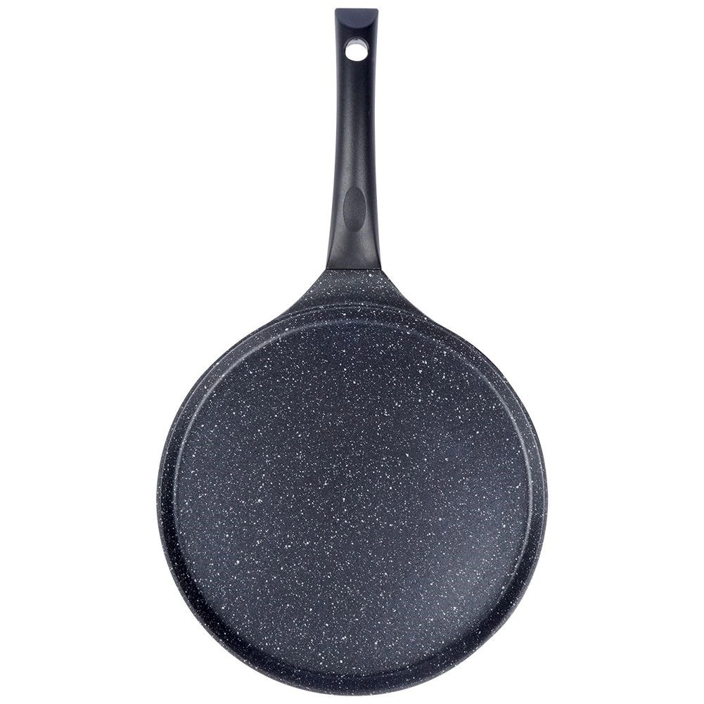 Otkrijte praktičnu tavu za palačinke GRANDE s granitnom površinskom obradom koja osigurava savršeno ravnomjerno prženje i jednostavno okretanje. Neprianjajuća površina bez PFOA i PTFE sigurna je za hranu i minimalizira potrebu za uljem, tako da pripremite lagane i hrskave palačinke, američke palačinke i omlete.