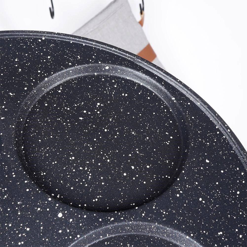 Četiri okrugle udubine drže tijesto ili jaja na mjestu i osiguravaju ujednačen oblik i veličinu svake porcije.