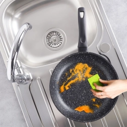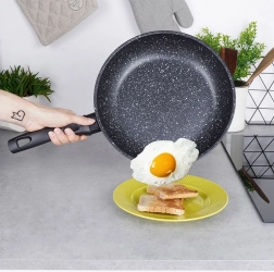 Posebna granitna površina bez PFOA i PTFE omogućuje kuhanje s minimalno ulja, jamči lako otpuštanje jela i brzo čišćenje. Indukcijsko dno učinkovito raspoređuje toplinu, štedi energiju i održava stabilnu temperaturu pri prženju i pirjanju.