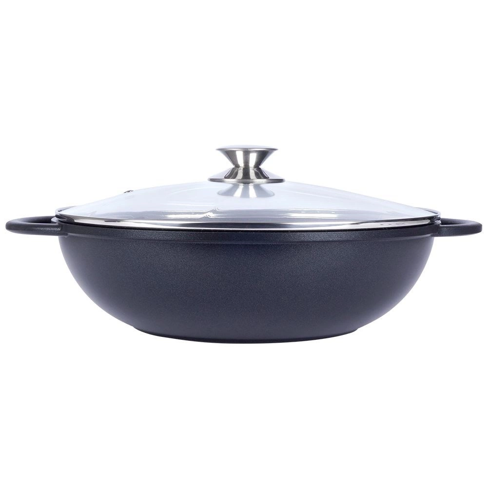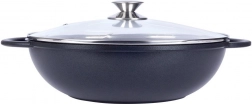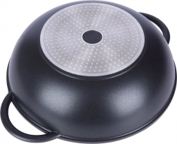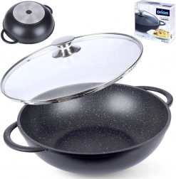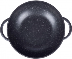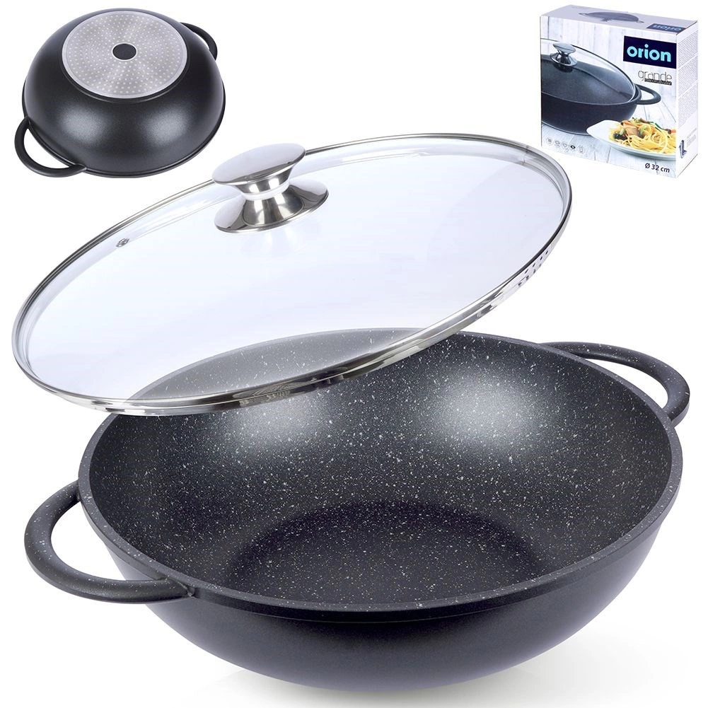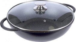 Otkrijte udobno kuhanje s wokom od izdržljivog aluminija s unutarnjom granitnom završnom obradom PFLUON, koja je neljepljiva, otporna na ogrebotine i visoke temperature. Zahvaljujući širokoj bazi i visokim stjenkama idealan je za stir‑fry, povrće, meso i tjesteninu. Proziran stakleni poklopac s inox rubom i otvorom za ispuštanje pare olakšava kontrolu kuhanja.