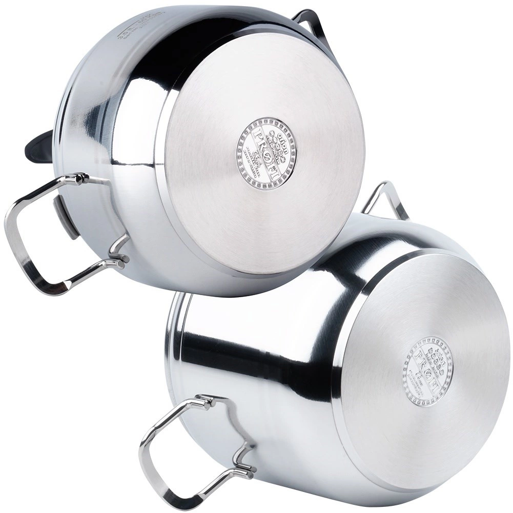 Set lonaca pod tlakom PROFI od kvalitetnog nehrđajućeg čelika skraćuje vrijeme pripreme jela na minimum i čuva više okusa i hranjivih tvari. Dvije zapremine (3,5 i 5 l) pokrivaju svakodnevno kuhanje – od juha i umaka do mahunarki i mesa. Stakleni poklopac pretvara lonac u obični kastro(l), a košara olakšava kuhanje na pari, cijeđenje i prženje.