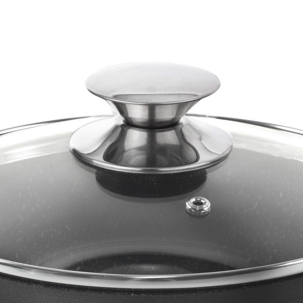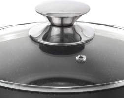 Proziran poklopac s metalnim gumbom i ventilom omogućuje kontrolu vrenja i ispuštanje suvišne pare.