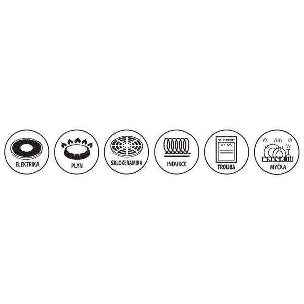 Debelo aluminijsko tijelo provodi toplinu brzo i ravnomjerno, čime štedi energiju i skraćuje vrijeme kuhanja. Lonac je univerzalan – prikladan je za plinske, električne, staklokeramičke, halogene i indukcijske ploče te je pogodan i za pećnicu (poklopac otporan do 200 °C). Nakon kuhanja možete ga prati u perilici posuđa, što štedi vrijeme i trud.