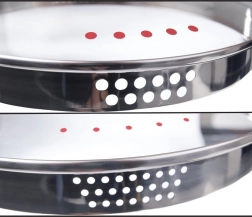 Praktičan stakleni poklopac s perforiranim rubom zadržava namirnice unutra i omogućuje sigurno i udobno odlijevanje vode bez cjedila.