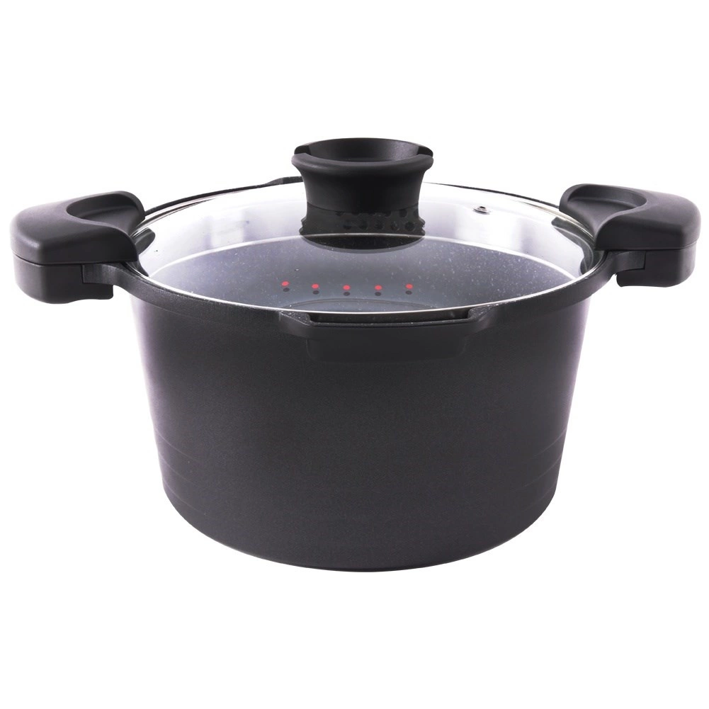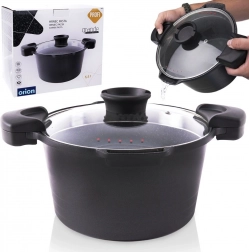 Elegantni i izdržljivi lonac iz linije ORION GRANDE spaja moderan izgled s visokom funkcionalnošću. Granitni neprianjajući sloj otporan je na ogrebotine i olakšava kuhanje s minimalno masnoće. Stakleni poklopac s perforiranim rubom omogućuje udobno cijeđenje izravno iz lonca, pa štedite vrijeme i posuđe.
