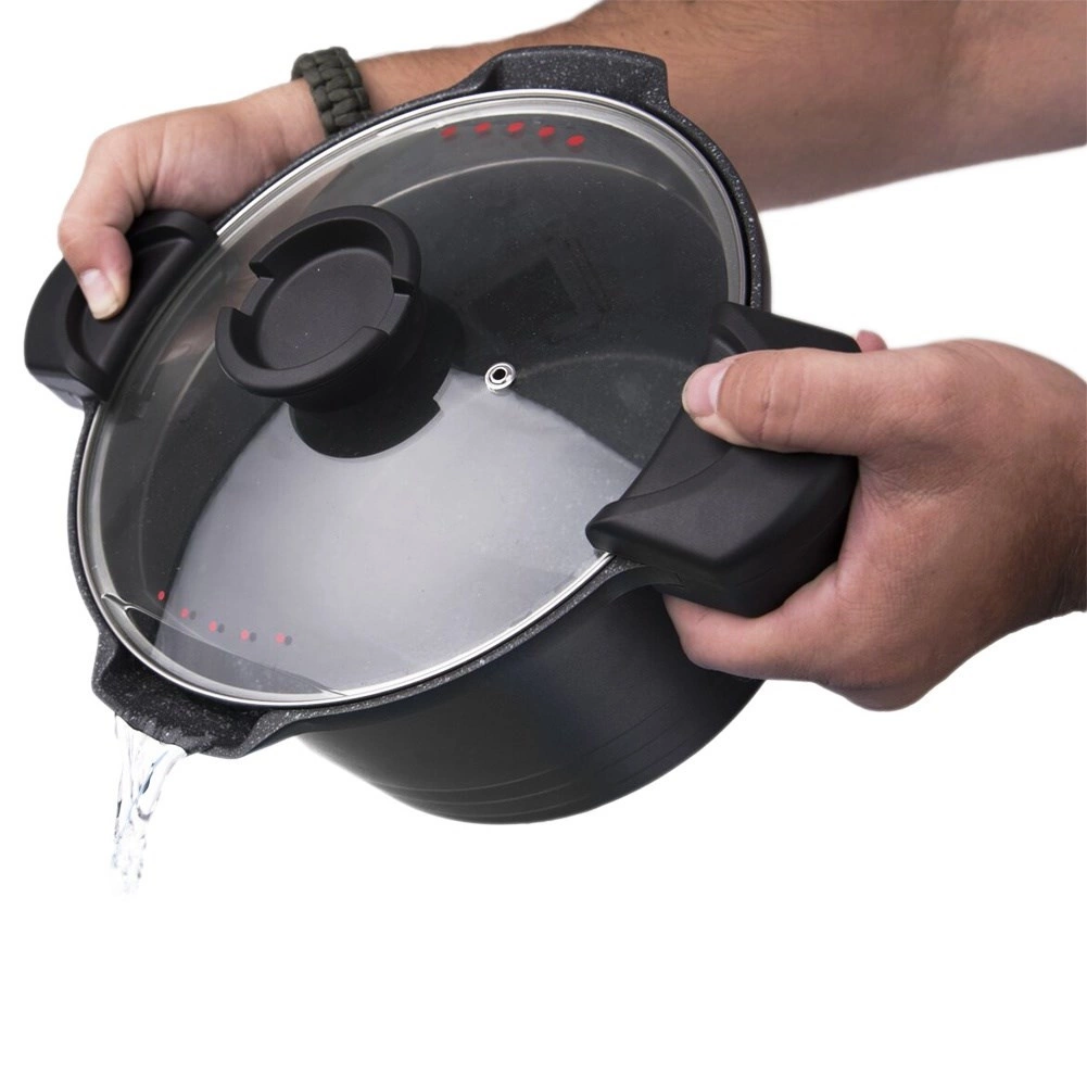 Ergonomske, na toplinu otporne drške i izljevci na tijelu lonca omogućuju siguran hvat i kontrolirano cijeđenje.