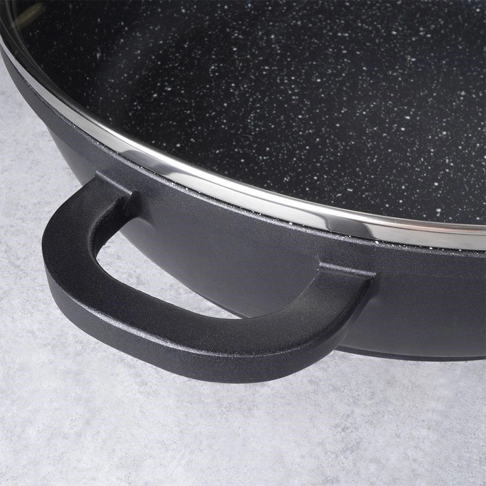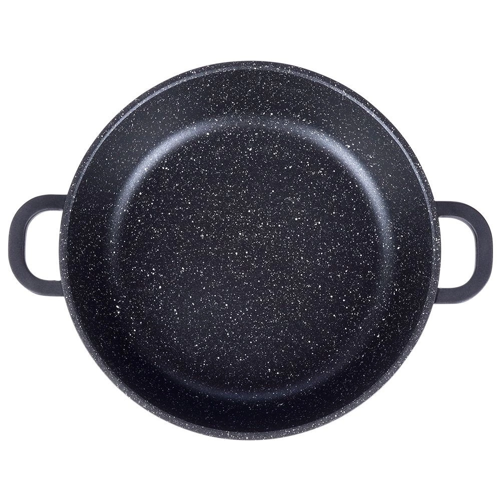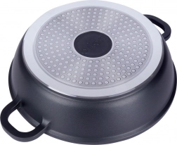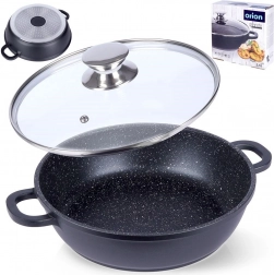Ova izdržljiva granitna tava idealna je za prženje, pirjanje i dinstanje. Masivno aluminijsko tijelo u kombinaciji s granitnom površinom PFLUON jamči odličnu neljepljivost, jednostavno čišćenje i pripremu jela s minimalno ulja. Stakleni poklopac s inox rubom i ventilom za paru pomaže zadržati toplinu i sočnost jela.