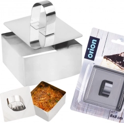 Kalup je izdržljiv, zdravstveno siguran i jednostavan za održavanje. Visina 4 cm i dimenzije 8 × 8 cm idealni su za porcioniranje i estetsku prezentaciju jela u kućnoj i profesionalnoj upotrebi.
