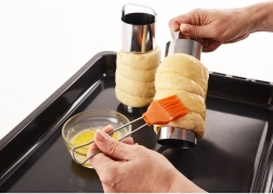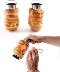 Profesionalni set od dva kalupa od kvalitetnog nehrđajućeg čelika idealan je za izradu mađarskih kurtosha i slovačkih trdelnika. Glatka površina jamči ravnomjerno pečenje i lako skidanje tijesta nakon dopečenosti. Iskoristit ćete ih i za drugo pecivo, primjerice sjajne cimetne rolice.