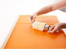 Neprianjajuća silikonska podloga pruža stabilnu površinu za valjanje i oblikovanje tijesta prije namotavanja na kalup.