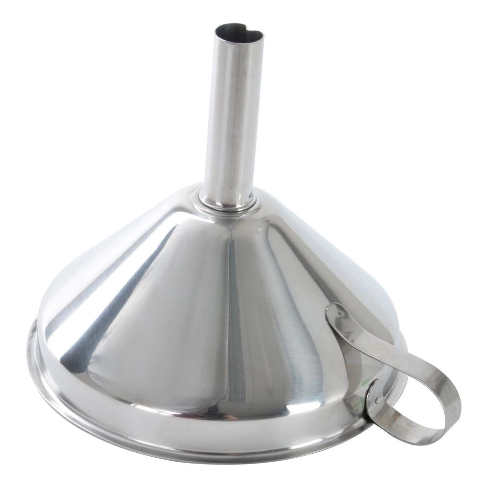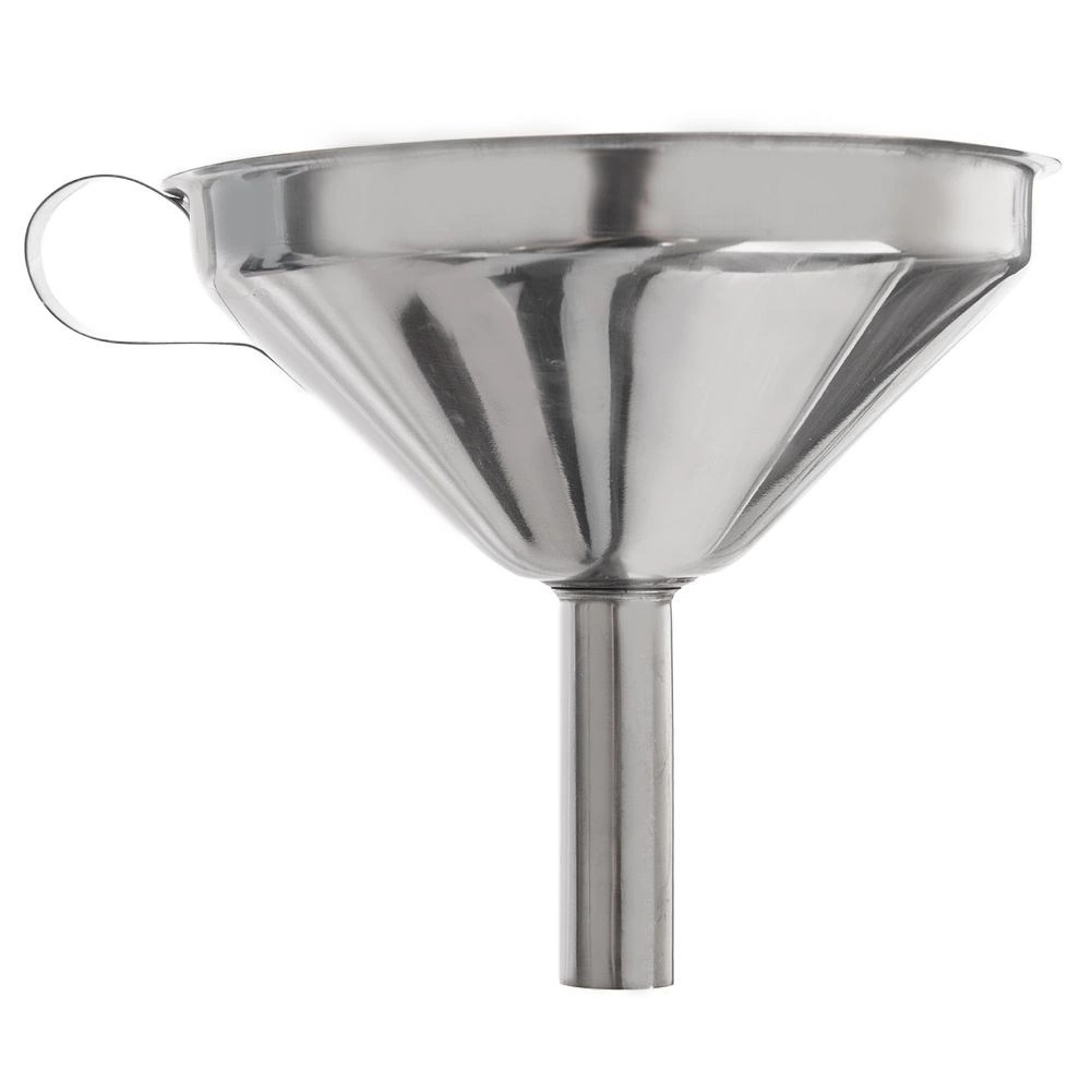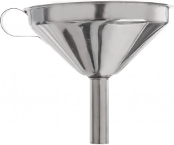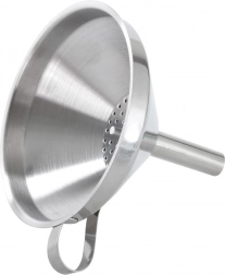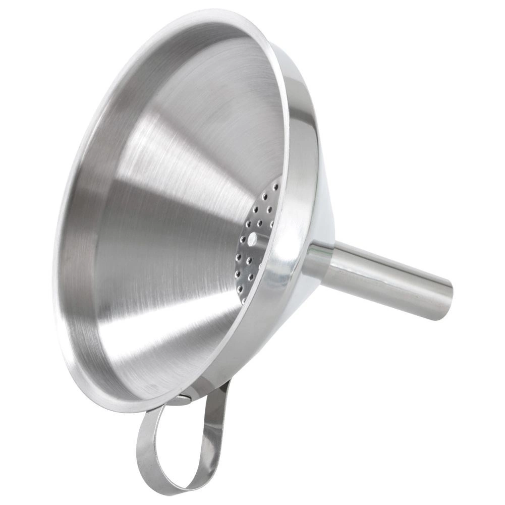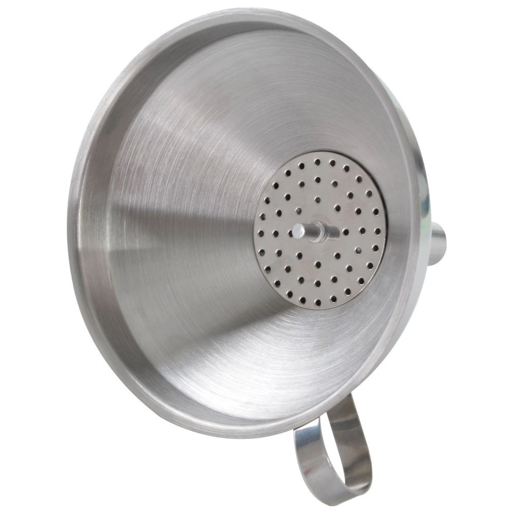 Olakšajte punjenje boca i čaša s izdržljivim kuhinjskim lijevkom od nehrđajućeg čelika. Izvadivo sito pouzdano zadržava komadiće voća ili sitne sedimente, pa je pretakanje čisto i precizno. Ergonomska ručka osigurava stabilno držanje i mogućnost vješanja na kuhinjsku šipku.
