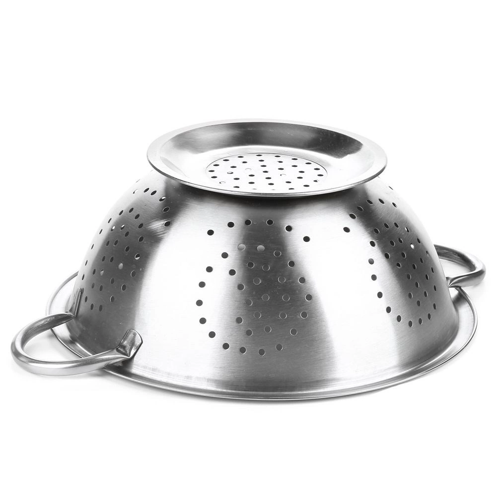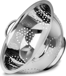 Univerzalni nehrđajući cjedilj promjera 28 cm s praktičnim bočnim ručkama i stabilnim postoljem za lako pranje voća i povrća te cjeđenje tjestenine. Izrađen od kvalitetnog nehrđajućeg čelika, izdržljiv je, siguran za kontakt s hranom i zahvaljujući brojnim perforacijama brzo odvodi vodu.