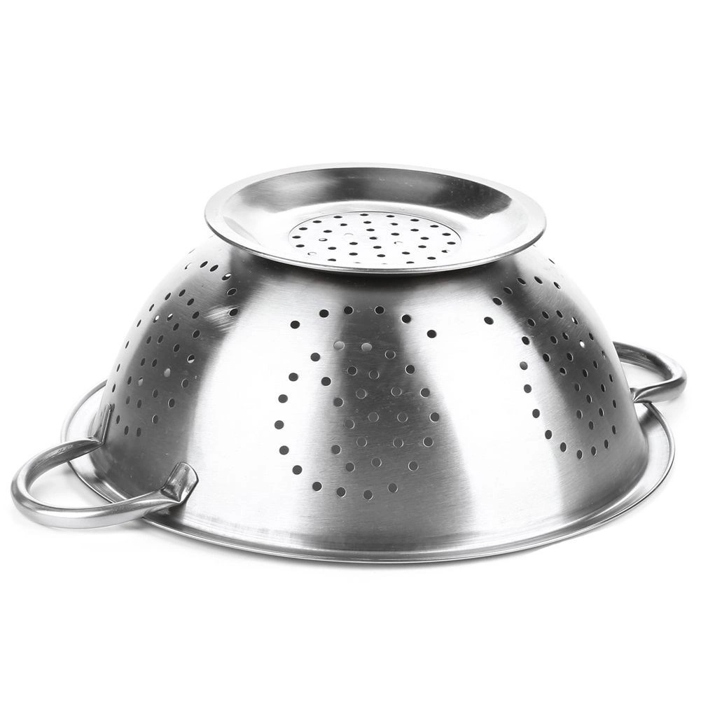 Ovo izdržljivo cjedilo od nehrđajućeg čelika spaja praktičan oblik duboke zdjele s povišenom nožicom za maksimalnu stabilnost u sudoperu. Zahvaljujući gustoj perforaciji, vodu odvodi brzo i učinkovito te je podjednako dobro za ispiranje voća i povrća kao i za cijeđenje tjestenine, knedlica ili riže.