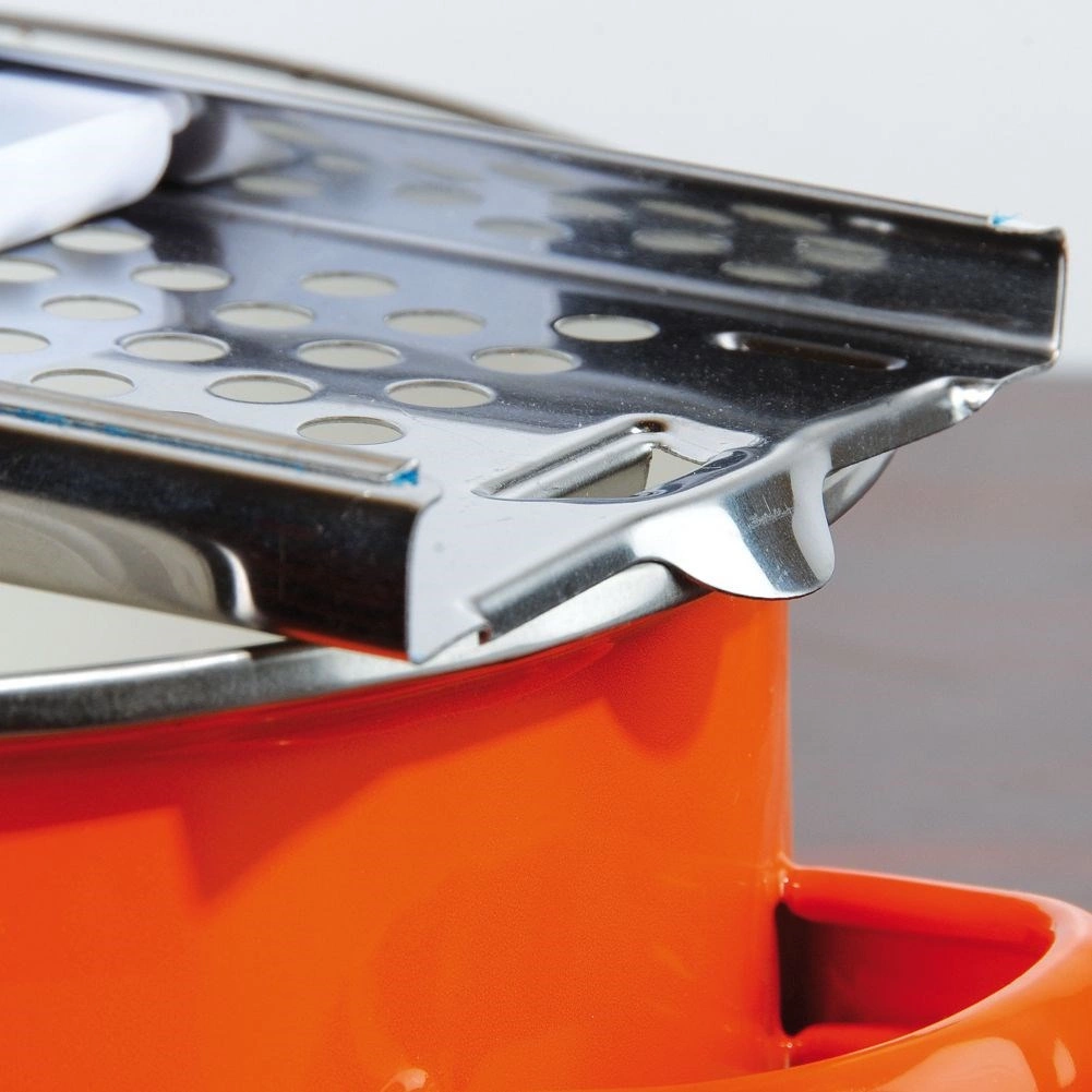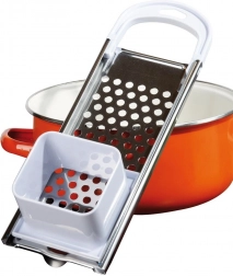 Praktični graničnik i ručka omogućuju udobno ribanje i protiskivanje izravno iznad lonca bez nereda.