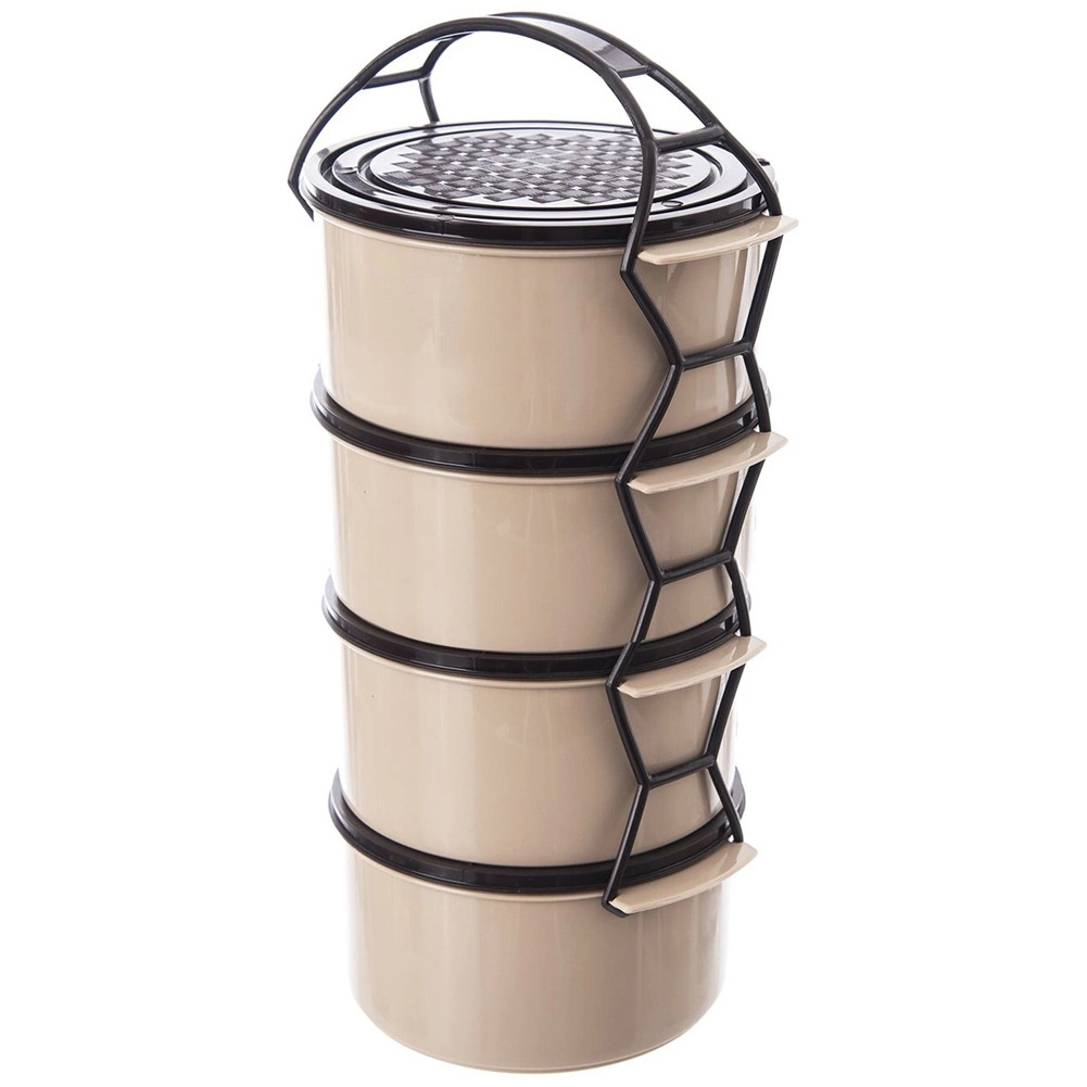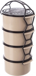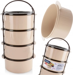 Uživajte u praktičnom prenošenju ručkova i večera zahvaljujući menazzi s četiri zasebne posude zapremine 1,5 l. Svaka posuda ima vlastiti poklopac, a sve drži na okupu robustan okvir s ručkom, pa možete sigurno prenositi različite slijedove odvojeno. Idealno za putovanja, izlete, kampiranje i svakodnevno nošenje hrane na posao.
