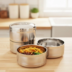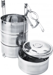 Odvojite pojedina jela bez miješanja okusa. Svaka posuda ima poklopac, a sve drži čvrst okvir s kopčama i gornjom ručkom.