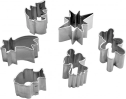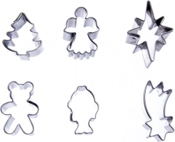 Praktičan set od šest malih božićnih kalupa za izrezivanje od kvalitetnog nehrđajućeg čelika za precizno ukrašavanje kolačića i torti. Sadrži oblike anđela, drvca, kometa, zvijezde, šarana i medvjedića. Idealan za izrezivanje središta keksa, ukrašavanje medenjaka te izradu ukrasa od fondanta ili marcipana. Izdržljiv nehrđajući čelik, sigurni rubovi, jednostavno čišćenje i mogućnost pranja u perilici posuđa.
