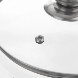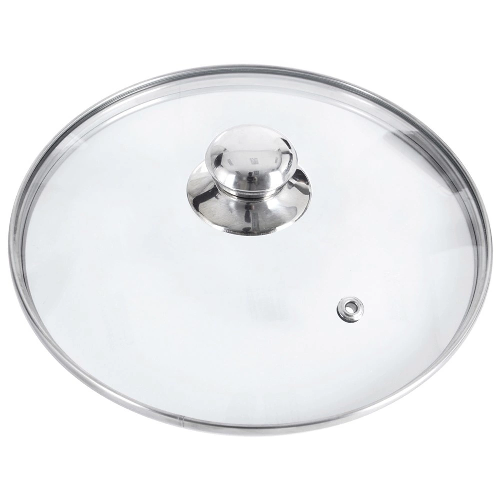 Stakleni poklopac promjera 30 cm idealan je dodatak svakoj kuhinji. Prozirno, toplinski otporno staklo omogućuje kontrolu kuhanja bez nepotrebnog gubitka topline i pare, dok parni ventil odvodi višak vlage. Nehrđajući rub i gumb osiguravaju izdržljivost i dugi vijek trajanja.