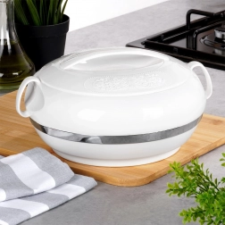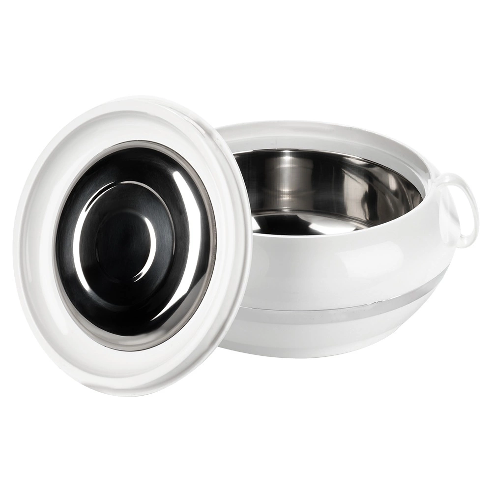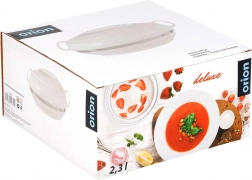 Elegantna termoposuda ORION Deluxe izvrstan je pomoćnik za svakodnevno posluživanje i vikend slavlja. Održava temperaturu pripremljenih jela, juha ili priloga do dva sata, a ljeti služi i za čuvanje sladoleda ili deserata na hladnom. Unutarnja glatka površina od nehrđajućeg čelika lako se čisti i higijenska je.
