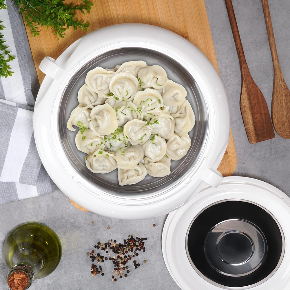 Termoposuda je izvrsna za zadržavanje topline do 2 sata, a ljeti je pogodna i za posluživanje sladoleda ili hladnih salata. Za bolji učinak predgrijte vrućom vodom ili ohladite u hladnjaku prema potrebi.