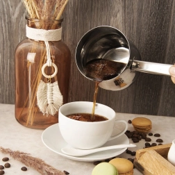 Odlična je ne samo za pripremu mirisne kave, već i za zagrijavanje mlijeka ili manje količine umaka. Ergonomska ručka ugodno leži u ruci, pa je rukovanje sigurno i udobno. Džezva je kompatibilna s plinskim, električnim i staklokeramičkim pločama, a možete je prati u perilici posuđa.