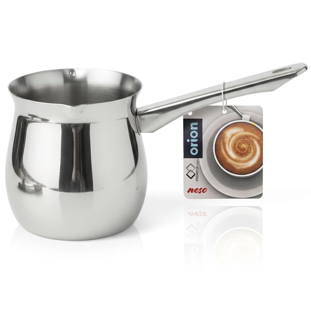 Otkrijte autentičan okus turske kave s elegantnom nehrđajućom džezvom zapremnine 600 ml. Zahvaljujući robusnoj konstrukciji od nehrđajućeg čelika osigurava ravnomjerno zagrijavanje, lako čišćenje i dugotrajnost. Praktičan izljev omogućuje precizno i čisto točenje, dok poseban gornji obrub pomaže spriječiti prelijevanje pri vrenju.