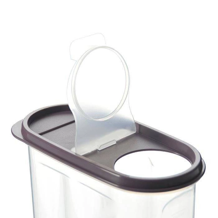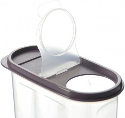Poklopac s preklopnim izljevnim otvorom omogućuje nasipavanje točne količine brašna, šećera ili žitarica bez skidanja cijelog poklopca.