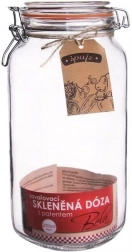 Staklena tegla zapremine 2 l izvrstan je pomoćnik za svakodnevno skladištenje namirnica i kućnu konzervaciju. Patentni zatvarač s gumenom brtvom čuva sadržaj dugo svježim te ga štiti od vlage, prašine i neželjenih mirisa. Zahvaljujući čvrstom metalnom kopču poklopac se lako i sigurno zatvara.