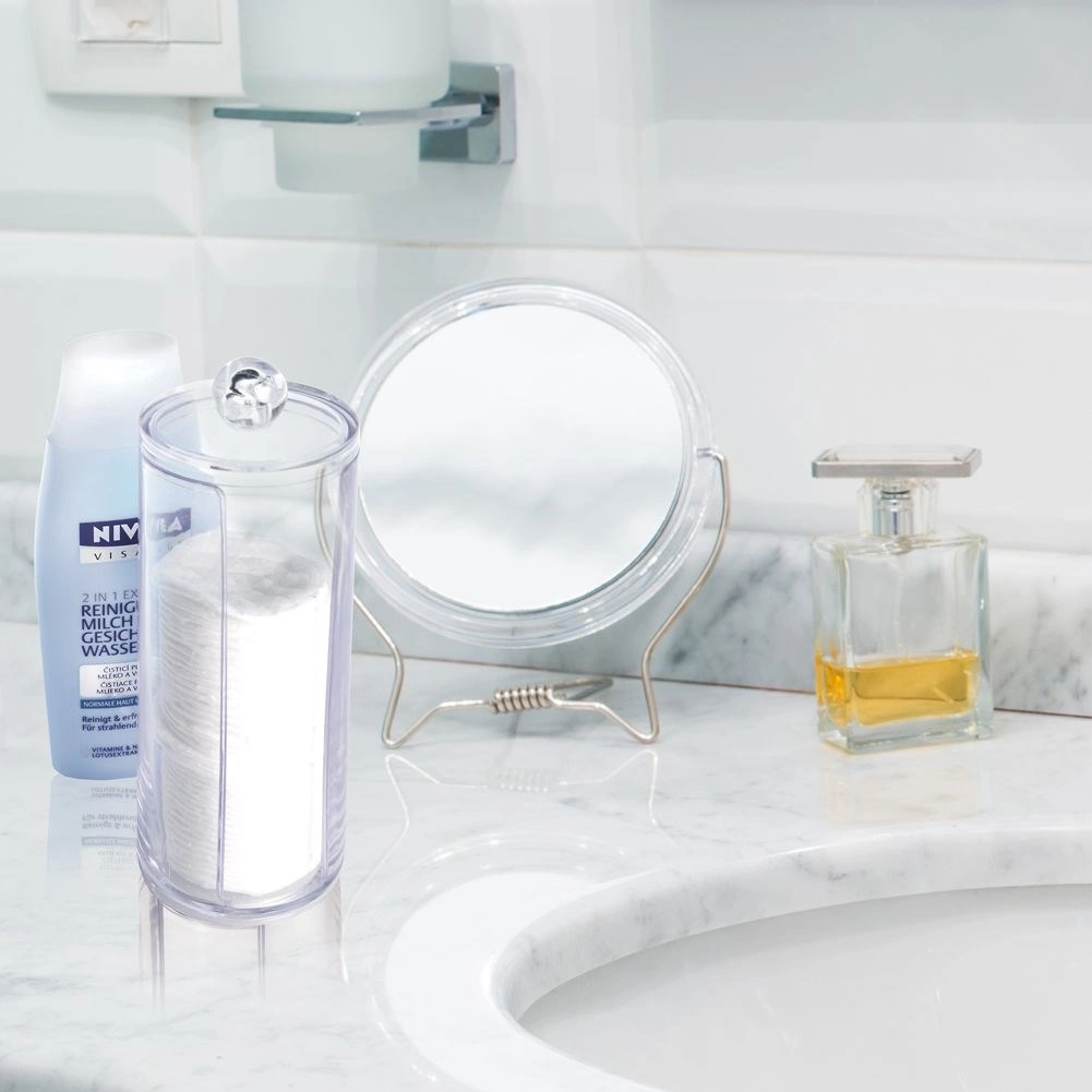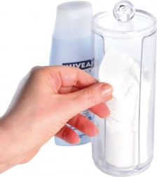 Organizirajte kozmetičke blazinice pregledno i higijenski. Prozirno tijelo omogućuje trenutačnu kontrolu zalihe, a poklopac štiti sadržaj od prašine i vlage. Kompaktne dimenzije 7,5 × 20 cm štede prostor na umivaoniku i toaletnom stoliću.