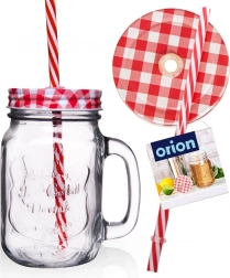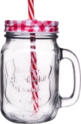 Ova staklena čaša u stilu mason jar kombinira praktične detalje s atraktivnim izgledom. Debelostijeno staklo pruža izdržljivost, navojni metalni poklopac sprječava prolijevanje i nečistoće, a slamka omogućuje udobno ispijanje. Odlično odgovara za domaće limunade, smoothieje, sokove i osvježavajuće napitke s ledom.