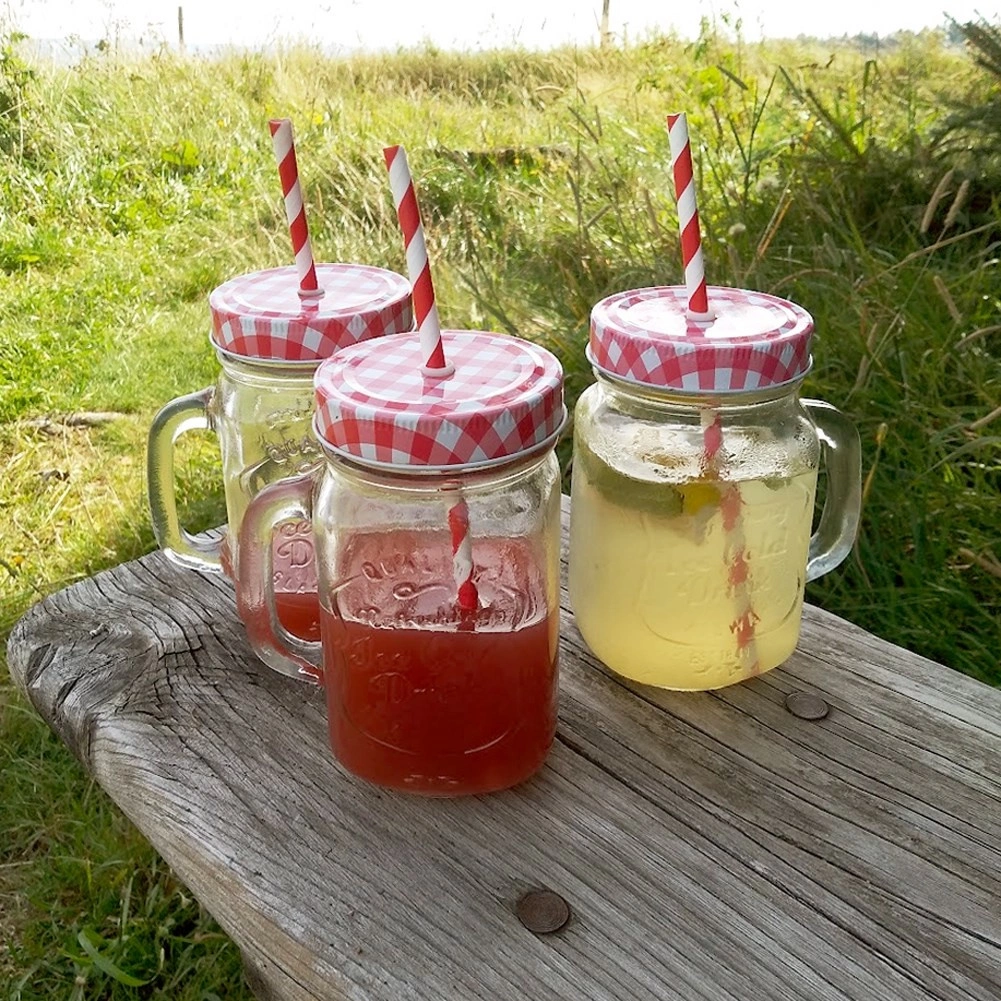 Navojni metalni poklopac s otvorom za slamku čuva napitak sigurnim i izvan dohvata insekata – idealno za vrt i balkon.