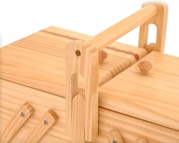 Ova elegantna drvena šivaća kutija u prirodnoj nijansi nudi promišljeno spremanje šivaćeg pribora i kreativnih sitnica. Harmonika klizna konstrukcija omogućuje otvaranje svih razina jednim glatkim pokretom, tako da vam je sve odmah pri ruci. Robusna ručka osigurava sigurno i udobno prenošenje.