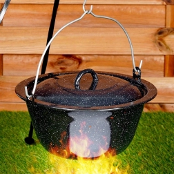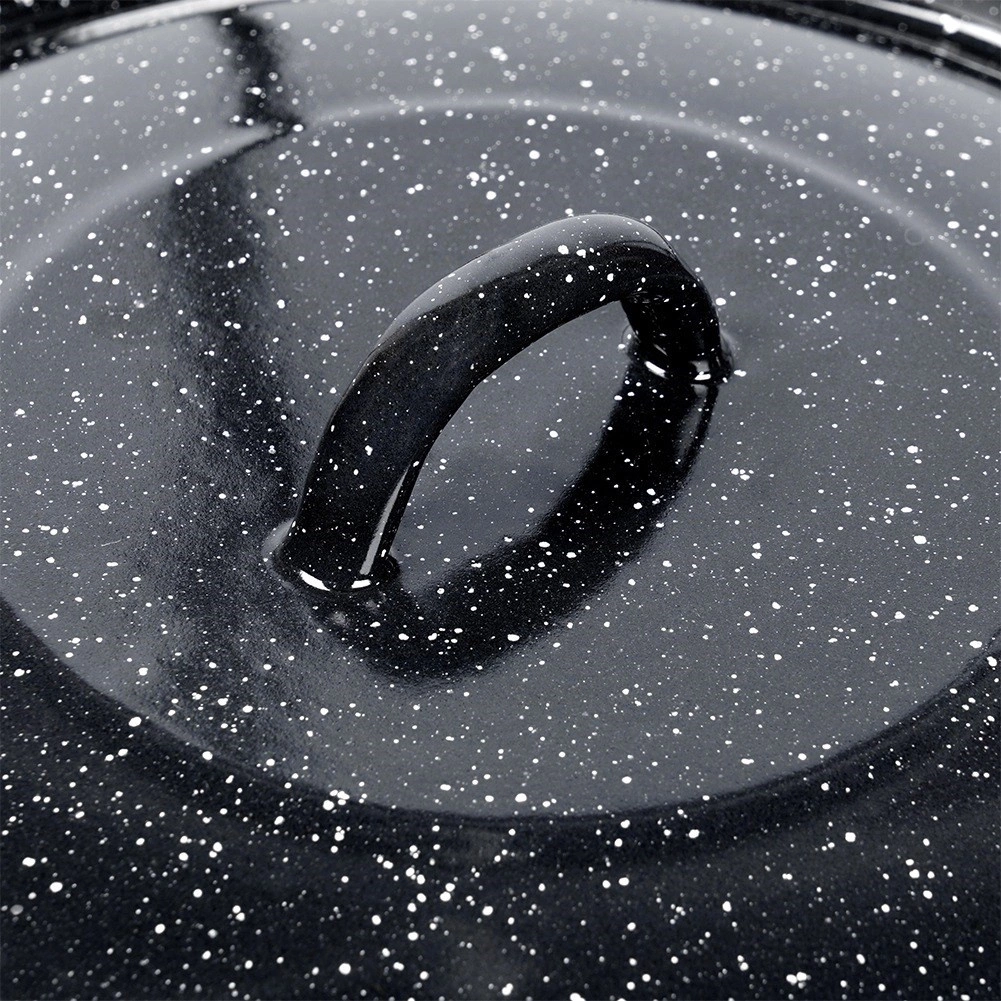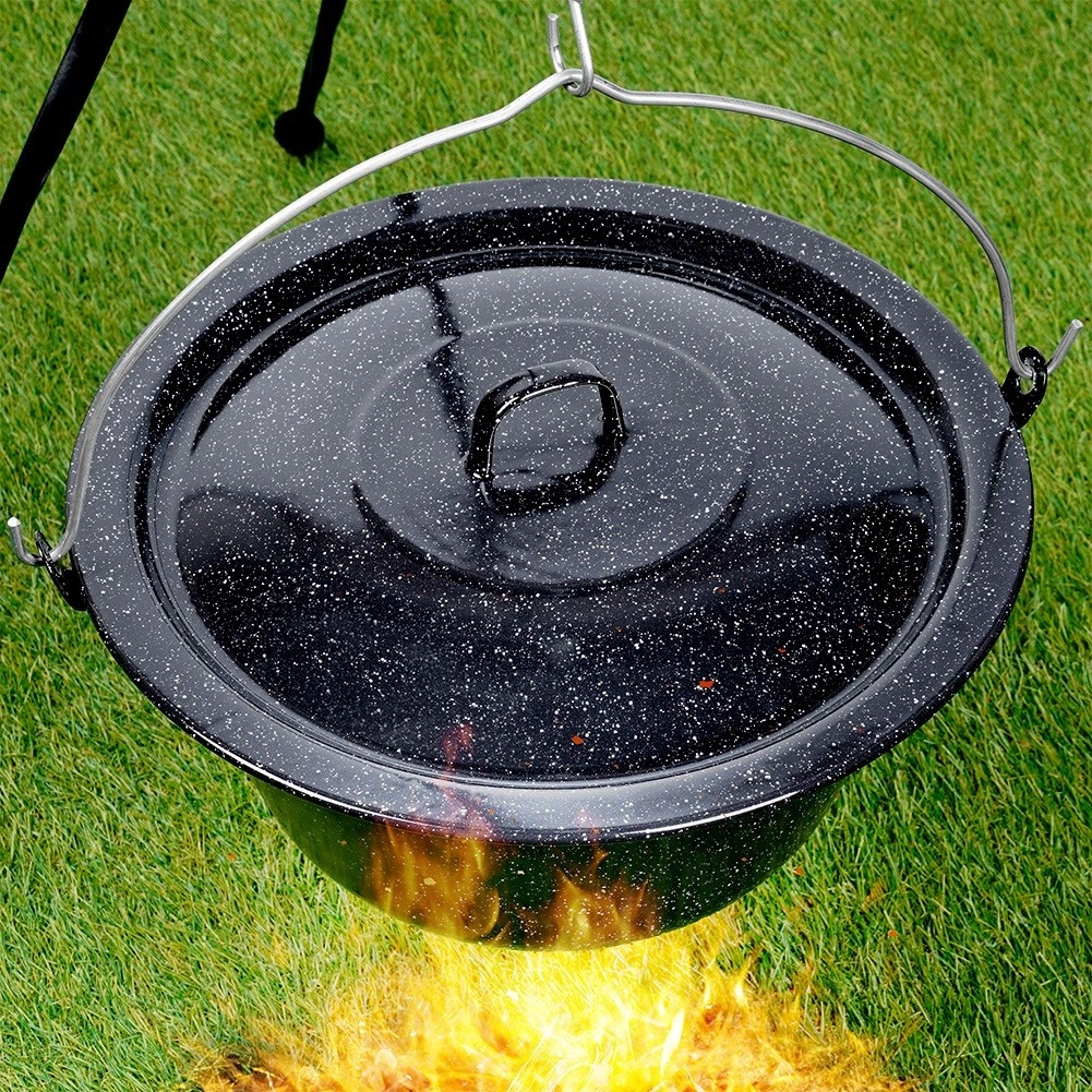 Crni emajl štiti od korozije i ogrebotina, higijenski je i lako se čisti – idealno za redovito kuhanje na otvorenom.