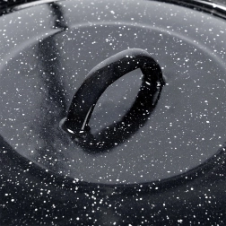 Čelično tijelo s emajlom otporno je na ogrebotine i koroziju, dok robusna ručka osigurava sigurno podizanje i pri višim temperaturama. Emajl može prirodno pokazivati manje tvorničke nepravilnosti (izbočine, neujednačen nanos i sl.) koje ne utječu na kvalitetu ni funkciju.