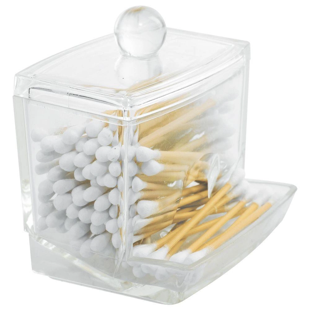 Bez ružnih jednokratnih kutijica. Ovaj prozirni akrilni organizer za štapiće za uši spaja stil i funkcionalnost: izdržljiv je, lagan i zahvaljujući kompaktnih dimenzijama stane na policu, u ladicu i na ploču umivaonika. Savršeno se uklapa u svaku kupaonicu i spavaću sobu.