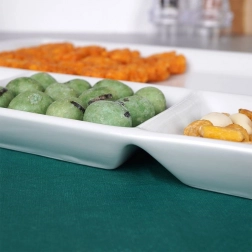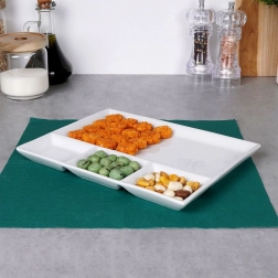 Jedan veći i tri manja pretinca drže okuse odvojene i osiguravaju urednu prezentaciju predjela, umaka ili priloga.