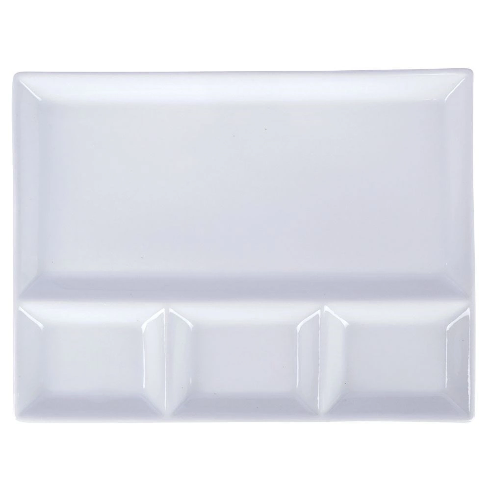 Svestrani podijeljeni tanjur od kvalitetnog bijelog porculana donosi vašem stolu čist i moderan izgled. Četiri praktična odjeljka omogućuju odvojeno posluživanje različitih jela, umaka ili priloga, tako da se okusi ne miješaju i svaka namirnica dođe do izražaja.