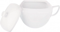 Ova porculanska zdjela za juhu s poklopcem spaja klasičan dizajn i praktičnu uporabu. Velika zapremina od 3,5 l omogućuje udobno posluživanje juha, gulaša, curryja i drugih jednolončanih jela za više osoba. Bijela glazura odlično pristaje svakom stolnom servisu i ističe se na svečano postavljenom stolu.