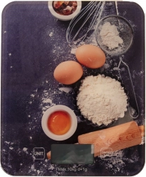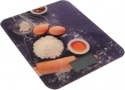 Praktična i stilska kuhinjska vaga za precizno vaganje namirnica. Zahvaljujući čitljivom LCD zaslonu lako provjerite težinu voća, povrća, rasutih i tekućih sastojaka. Plosnata konstrukcija od kaljenog stakla s dekorativnim motivom jednostavna je za održavanje i štedi prostor u ladici ili ormariću.