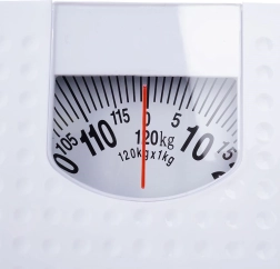 Jednostavna i pouzdana mehanička osobna vaga u bijeloj boji za svakodnevnu kontrolu tjelesne mase. Nudi maksimalno opterećenje 120 kg, čitljiv analogni brojčanik s podjelom po 1 kg i protukliznu površinu za sigurno stajanje. Radi bez baterija – mehanički rad štedi brige i troškove.