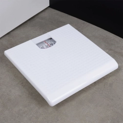 Mehanička kupaonska vaga s čvrstim plastičnim kućištem i niskim profilom idealna je za kućnu uporabu. Zahvaljujući preglednoj skali u kilogramima do 120 kg brzo ćete saznati svoju težinu bez čekanja i bez baterija. Čist bijeli dizajn uklapa se u moderne i klasične kupaonice.