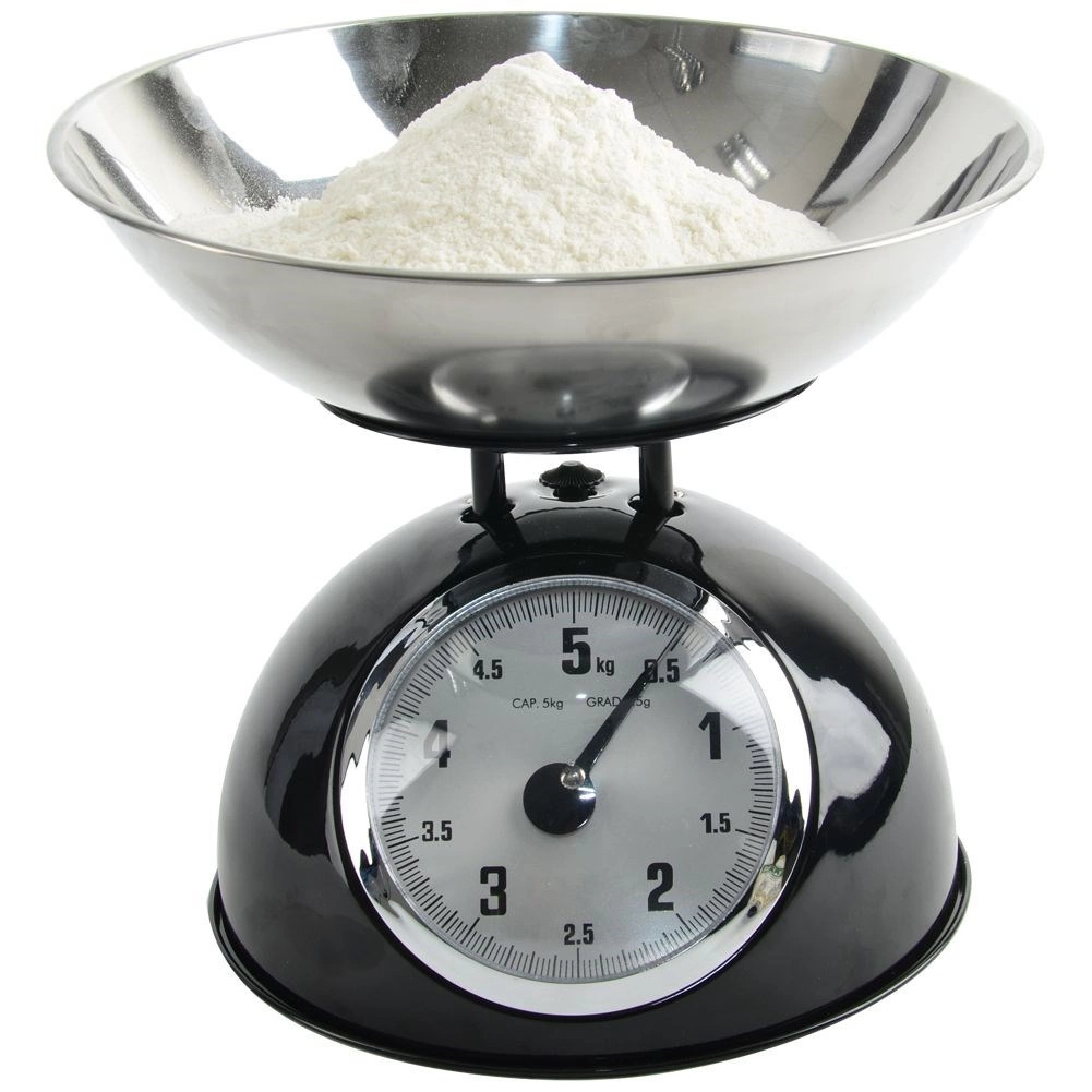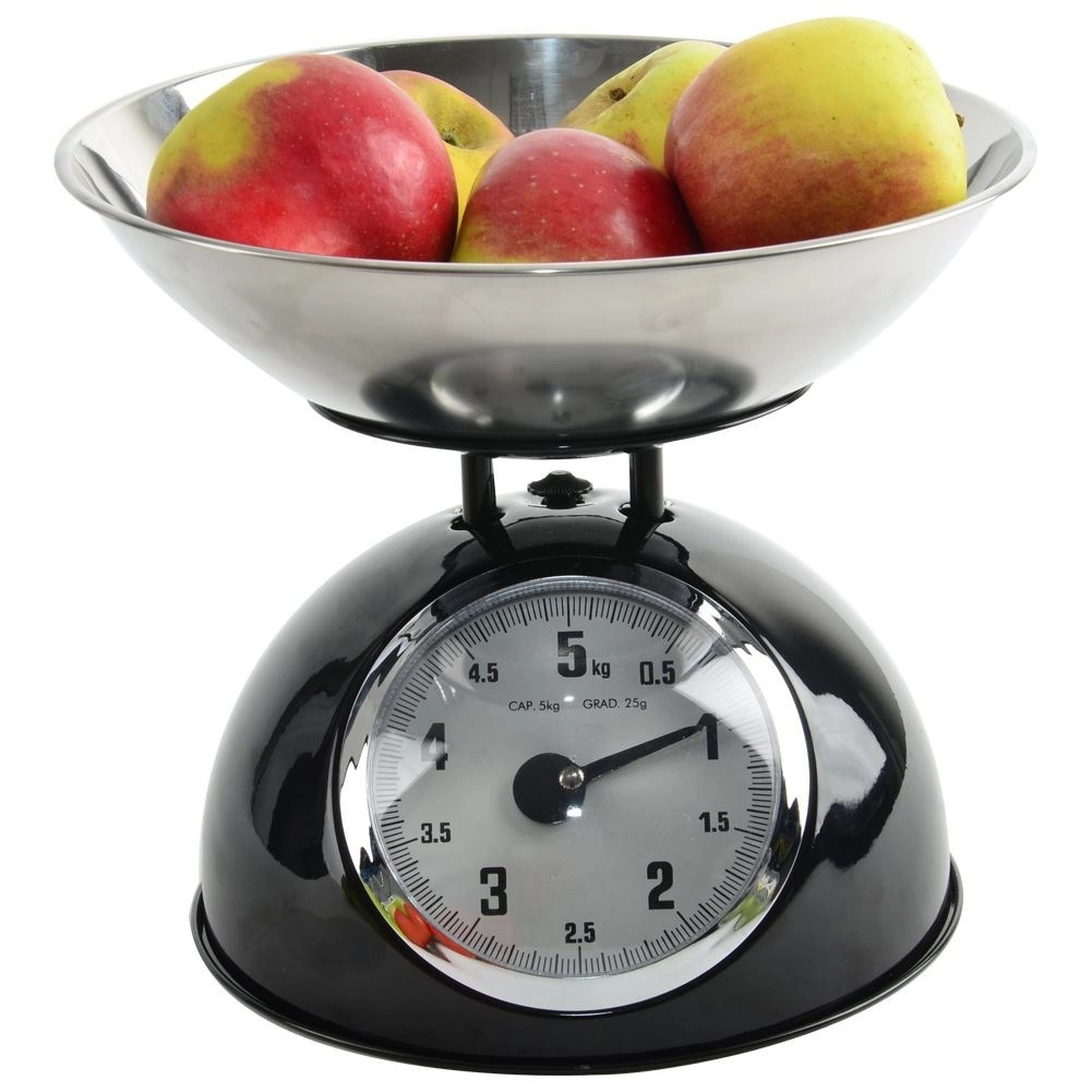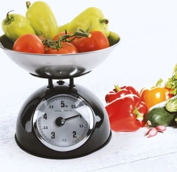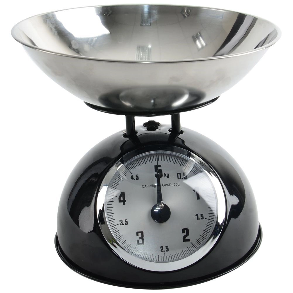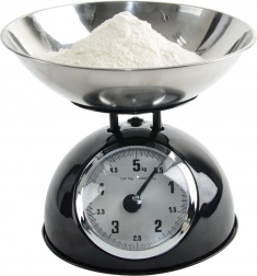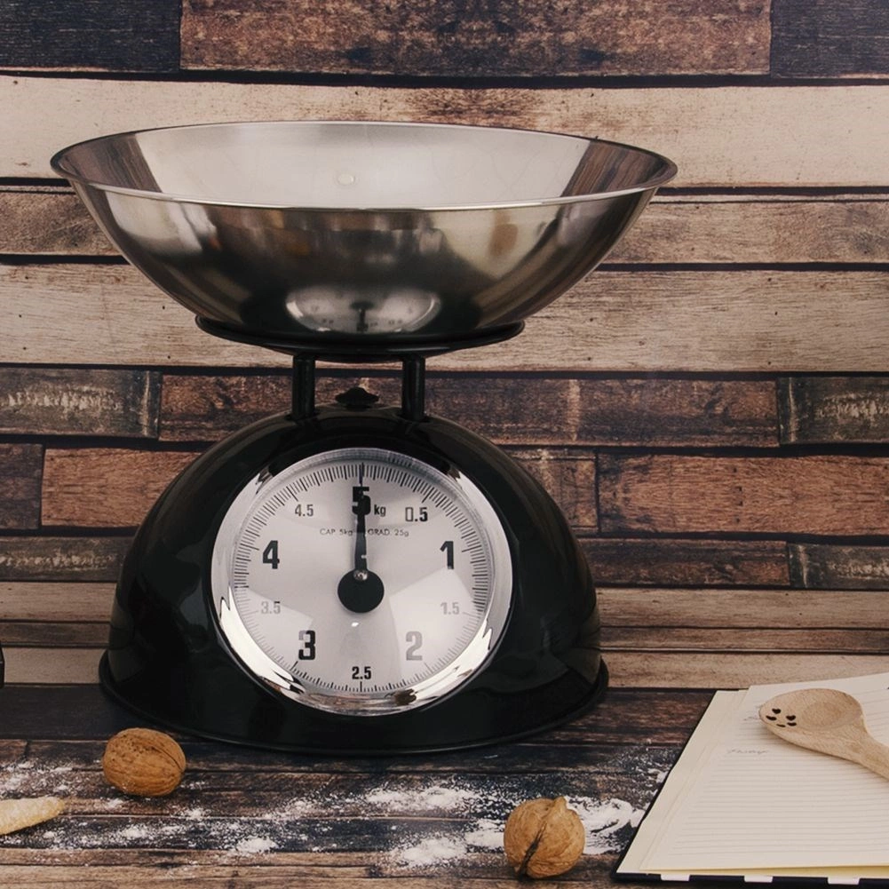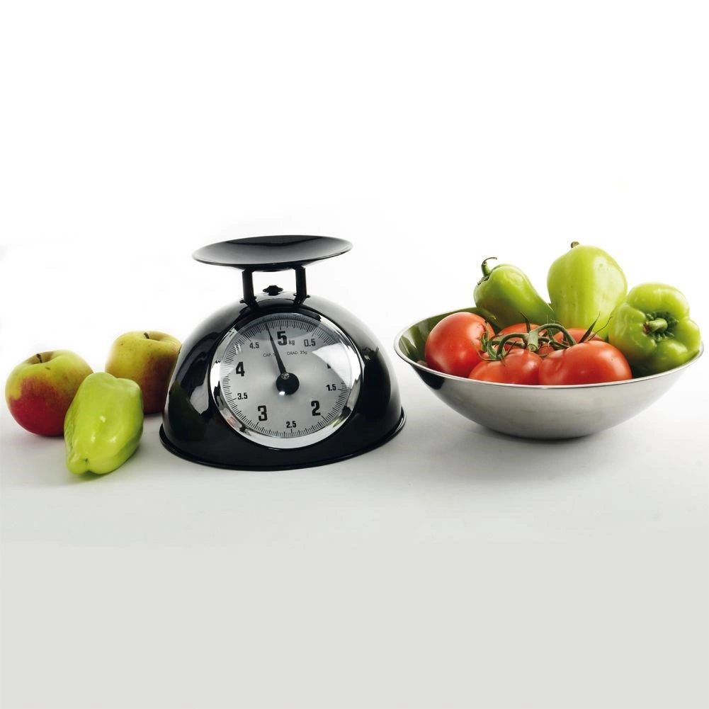 Ova mehanička vaga u retro stilu pouzdan je pomoćnik u svakoj kuhinji. Robusno metalno kućište u crnoj boji i posuda od nehrđajućeg čelika osiguravaju dug vijek trajanja i jednostavno održavanje. Zahvaljujući analognom brojčaniku s jasnim označavanjem do 5 kg, lako ćete izvagati voće, povrće, rasute namirnice i meso.
