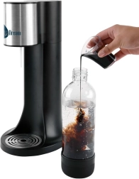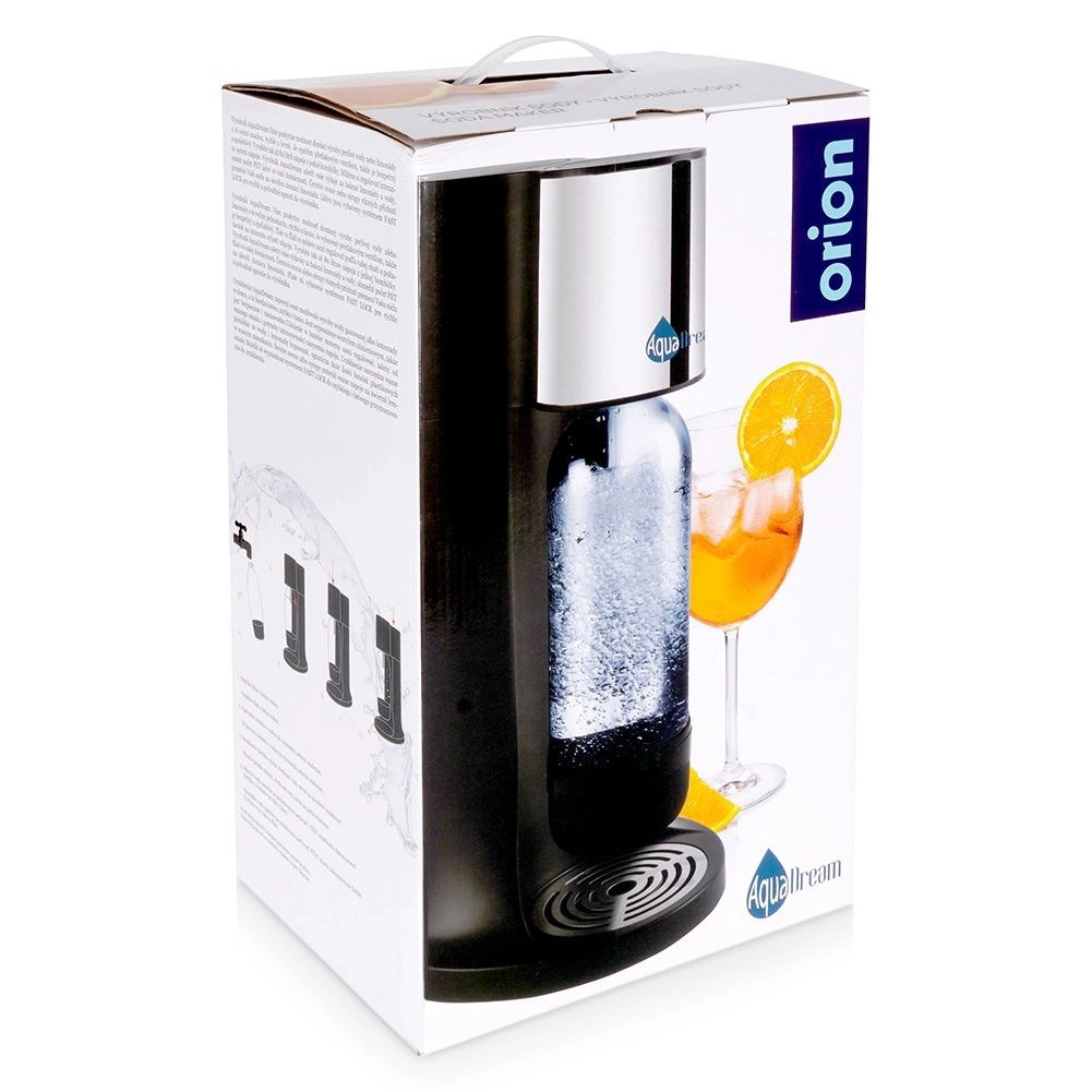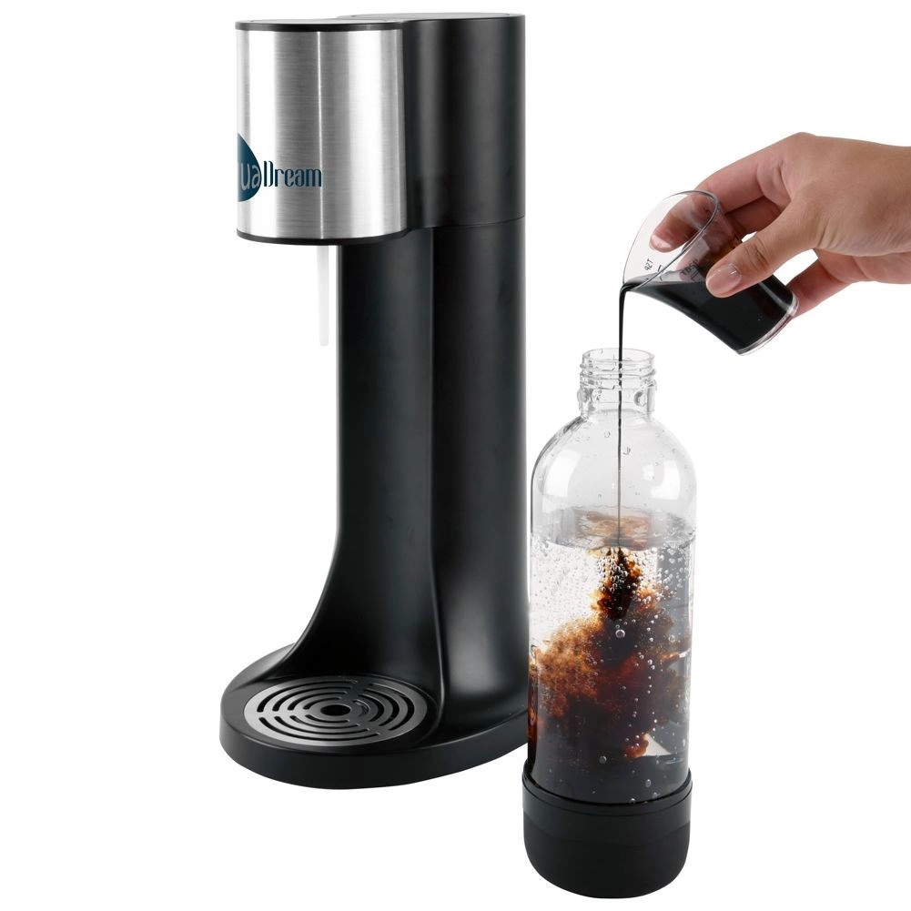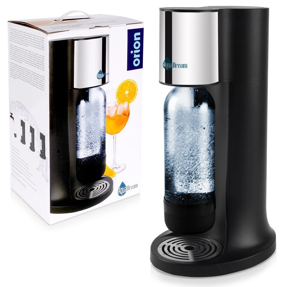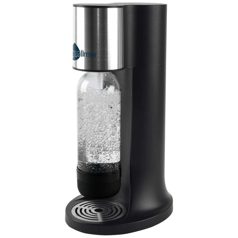 Kućni uređaj za pripremu gazirane vode AQUADREAM praktično je rješenje za svakodnevno osvježenje. Omogućuje vam pripremu gazirane vode, domaćih limunada, pa i blago gaziranog vina točno po ukusu. Zahvaljujući kompaktnim dimenzijama uklapa se u svaku kuhinju, a njegovo elegantno crno izvedenje dobro se slaže s modernim aparatima.