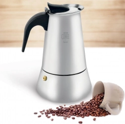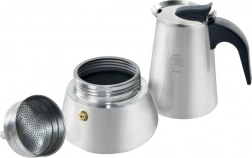 Ova kvalitetna moka kafetijera od nehrđajućeg čelika donosi autentičan okus i miris talijanskog espressa u vašu kuhinju. Robusno tijelo od nehrđajućeg čelika jamči dug vijek trajanja i ravnomjernu raspodjelu topline, dok ergonomska ručka od bakelita osigurava siguran i udoban hvat.
